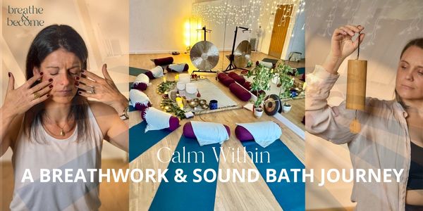 Calm Within is a two-hour breathwork and sound bath experience designed to help you quiet the noise of daily life and reconnect with your calm centre.